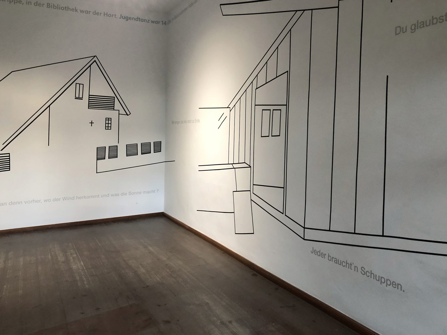 Es geht um Innen- und Außenraum, Idealraum und Zweckraum, Wohn- und Arbeitsraum, temporäre Bauten, Vergangenes und Zukünftiges und um ganz viel Eigeninitiative. Die vor Ort entstandenen Skizzen, Erzählungen und Fotos fließen in die künstlerische Präsentation im Museum Altranft ein.